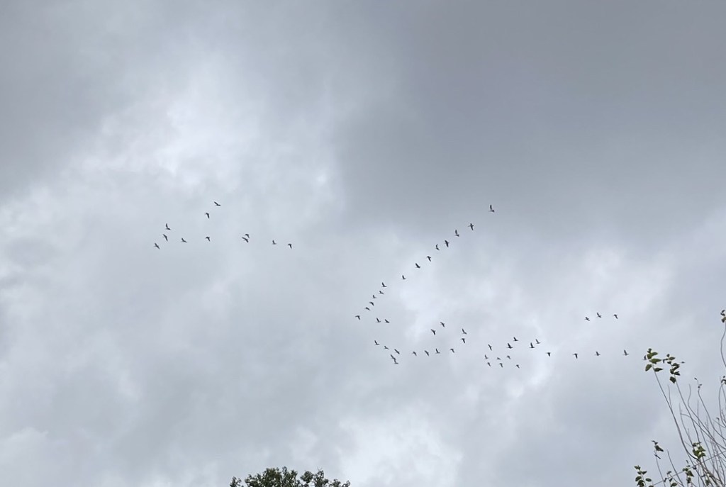 I don’t know why exactly, but this flock of geese that flew over my house just the other day really caught my attention. I heard them coming before I spotted them, their honking as distinctive a sound as any. I marveled at their not-too-tight V and the directions they were clearly honking out to one another. No idea where they came from, but I knew they were migrating. It was just a beautiful, fleeting moment, one that caught me off guard, one that inspired me in a lot of ways I can’t fully explain, and I still don’t quite know why.